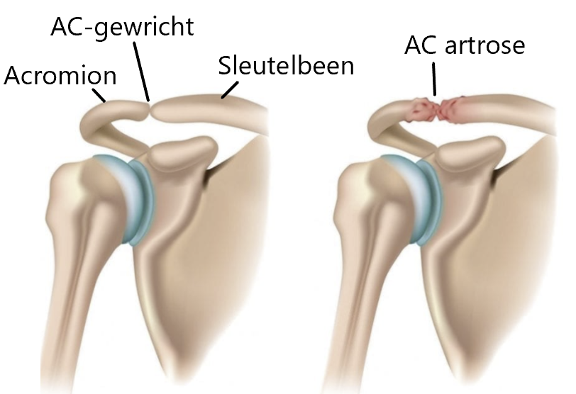 Het acromioclaviculair gewricht is het gewricht tussen het acromion (dakje van de schouder) en de clavicula (sleutelbeen). Als er slijtage optreedt van het kraakbeen in dit gewricht, spreken we van acromioclaviculaire (AC) artrose.