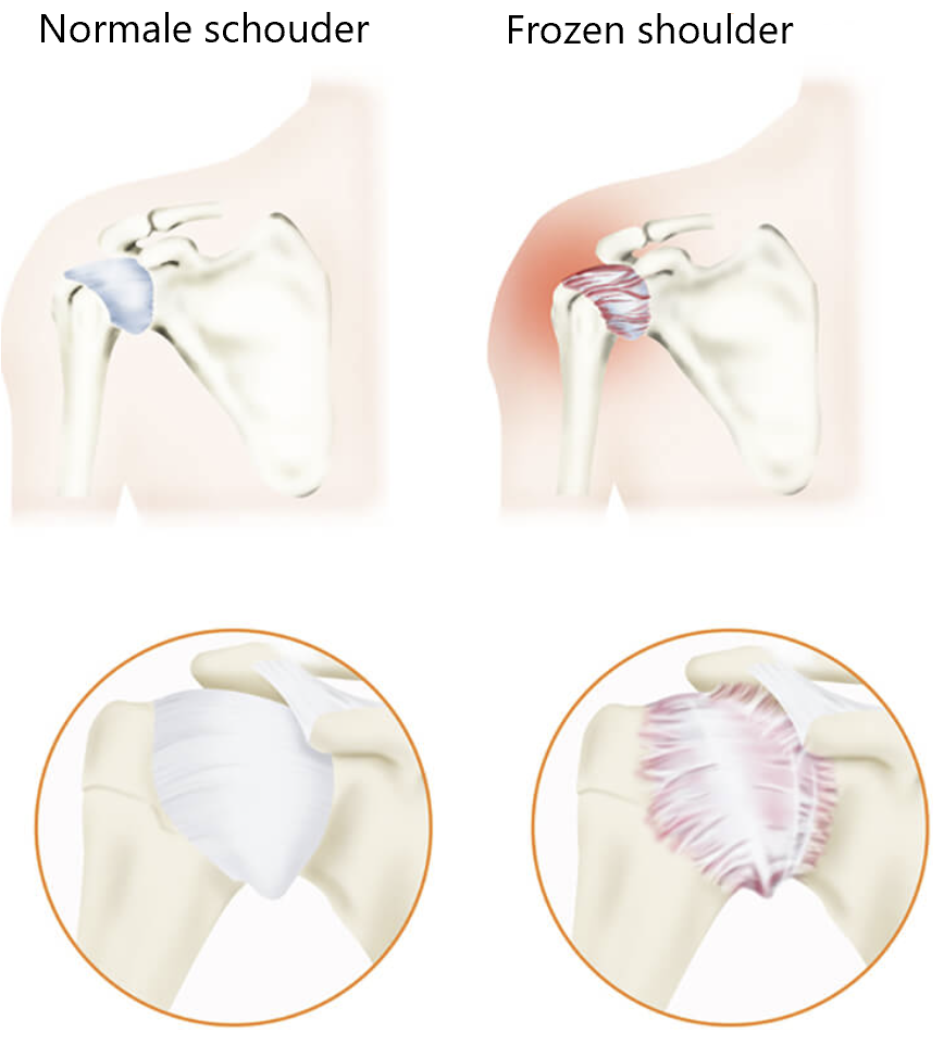 - Postoperatief: Er kan een frozen shoulder optreden na een schouderoperatie. De kans is neemt toe bij ingrepen waarbij er een verlengde immobilisatie nodig is.