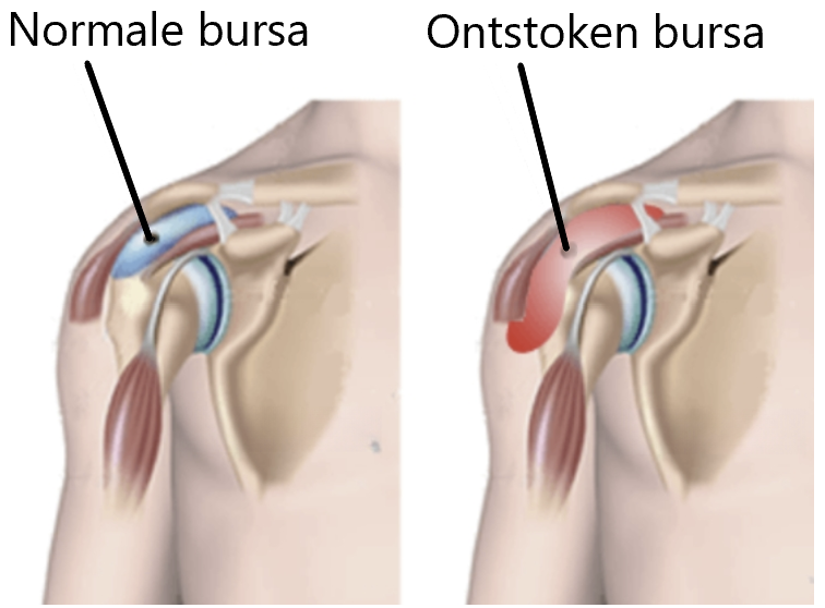 Wanneer de slijmbeurs ontstoken raakt (bursitis) of de pezen geïrriteerd of beschadigd zijn (tendinopathie), kan dit pijn en bewegingsbeperking veroorzaken. Deze aandoeningen komen vaak samen voor en worden ook wel aangeduid als subacromiaal pijnsyndroom.